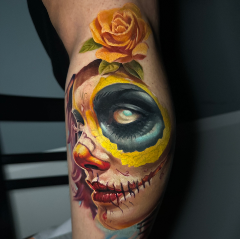 Carlos Naranjo, known as Inexor, is an Ecuadorian tattoo artist with over 10 years of experience, specializing in detailed realism and vibrant color work. His passion for art began in childhood through drawing, painting, and ceramics, later evolving into tattooing after moving to the United States. Inspired by movie characters, from horror icons to superheroes and villains, as well as true-to-life realism, Carlos has developed a signature style that blends precision with creativity. His work has been recognized at international conventions and competitions, earning him finalist positions in categories such as Color Realism and Full Color.